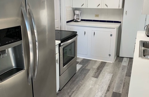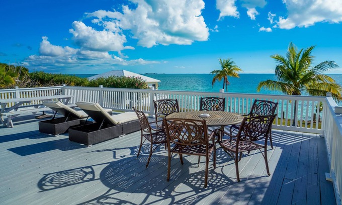 The newly renovated beachfront house comes with a golf cart to get around town easily. This rental is equipped with smart TV and High Speed Internet. You can keep up to date with family and news from back home. Dine at one of the restaurants in Spanish Wells or be your own chef, with a full kitchen the choice is yours. You also have the convenience of a full laundry right in the cottage. Our back yard has the most amazing view from the deck overlooking Meeks Patch and Royal Island.