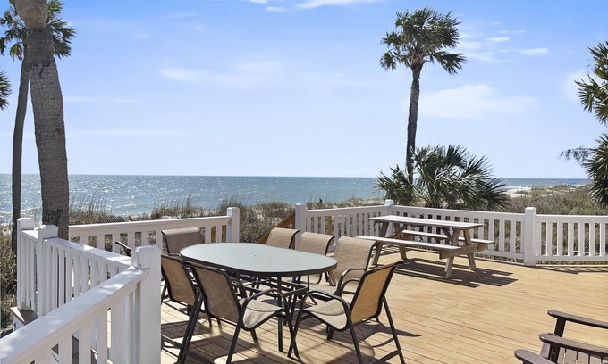Beachfront w/Main House & Guest House; Screened Porch; Sun Deck; Cable TV/WiFi is located in South Carolina Lowcountry. Beachfront w/Main House & Guest House; Screened Porch; Sun Deck; Cable TV/WiFi provides accommodation, featuring Ocean View, Security/Safety, Entertainment, among other amenities. This House features Ocean View, Security/Safety, Entertainment, to make your stay a comfortable one.