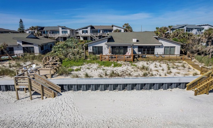 Set amidst the undulating dunes and lush hammocks, this stunning 3-bedroom, 3-bathroom townhome with a loft gracefully rests upon the gentle white sands, providing an unrivaled beachfront sojourn. Immerse yourself in the unspoiled natural beauty surrounding this abode, offering direct access to the immaculate car free beach steps from your entryway. Revel in the seamless convergence of coastal charm and accessibility, relishing in the property's proximity to New Smyrna Beach's vibrant shopping, dining, and diverse attractions. Explore a serene getaway where the horizon meets soft sands, beckoning you to craft indelible memories at the heart of New Smyrna Beach.