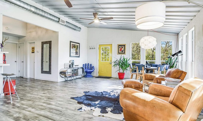 The BeachHouze boasts an open kitchen,living and dining area. Bedrooms are set up with one queen and one adult sized bunk bed -add the couch in the living room and this place is perfect for larger groups. With a focus on Mid century design, this Houze is filled with unique vintage items from a simpler time when the focus wasn't on quantity but instead on simplicity and quality craftsmanship- something we admire greatly and want to keep alive. Outside there is plenty to see and do, and as our guest, you get access to all 10 acres with complete privacy, all while being right next to everything Warrenton and Round Top has to offer.