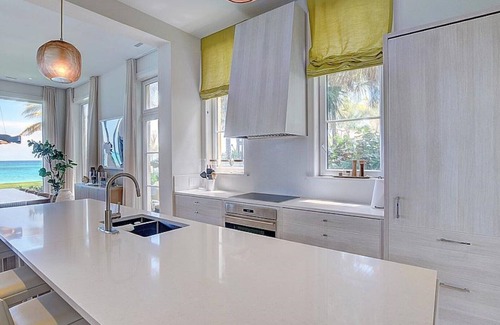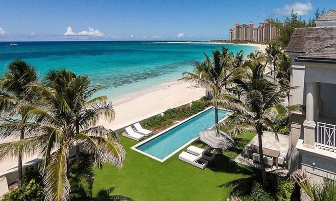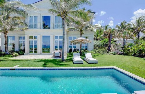 This luxury Paradise Island villa is ocean front with beach access directly in front. It has a private pool and 4 beautiful bedrooms each with their own bathroom.