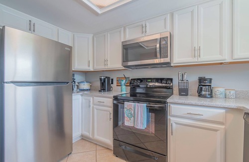 Enjoy a carefree stay at this beachside oasis. Spacious 1 bedroom condo with amenities galore. This space is great for couples to enjoy, though there is a pull out couch for an extra 2 guests. This condo has a fully equipped kitchen, both bath and beach towels and beach chairs. The community boasts 3 pools, 2 of which are heated, pickle ball and tennis courts, shaded walkways and beach acces right across the street!