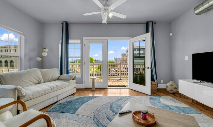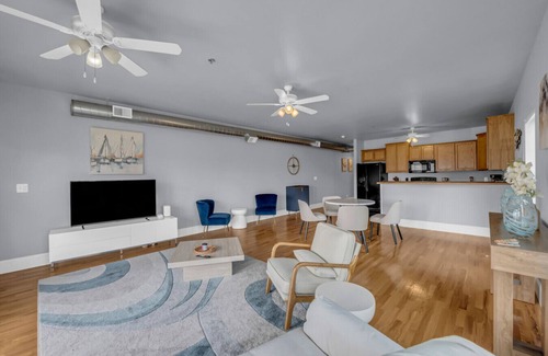 The king-sized bed and queen pull-out sofa comfortably sleep four guests. Step out onto your private balcony and soak in stunning views of the Black River, sailboats, and the iconic Military Street drawbridge. Just steps away from downtown’s vibrant shops, bars, and restaurants, and within walking distance of the St. Clair River. Whether you're attending a wedding at The Flats Hotel (kitty-corner from the property), enjoying downtown events, or docking your boat nearby, this stay offers both relaxation and convenience.