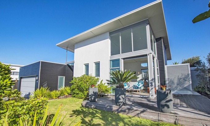 Only a 200-metre stroll to the white sands of Ruakākā Beach, enjoy an elevated coastal escape with your loved ones at this stylish holiday home, where you can enjoy much of what the Winterless North has to offer. Welcome to Beachy on Bream!