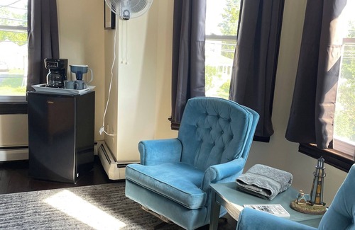 Calm Seas Room is a private lock and key room in my home on the second floor. Queen bed with brand new mattress. Bathroom is potentially shared with the two other rooms on the floor. Everything you need is here. Provided are clean sheets, pillows, blankets, shower towels, hand towels, extra blankets. Room has mini fridge, 10 cup coffee maker, Pur water purifier, smart tv, desk chair and clock sound machine.(for awesome sleeping).The room is situated in the front of the house and there will be road noise during the day hours. It is very quiet in the evening but I have included alarm clock/sound machine and fan which drown out any porch or road noises. House has central air and heat as well as supplemental fan and space heater for your preference. I have many amenities to share such as the best available WIFI, bikes, beach towels and chairs, kayaks and more. Full 1st floor beautiful kitchen is at your disposal as well. Off street parking, private yard with garden, yoga mediation space and more. Max occupancy of 2 for the room. smoke free home. not child appropriate. Each room is different, with art and soul. Whole house can be rented for large parties. I'll be there as much as you need... will be in my back apartment and not in your business unless needed. There may be other guests in their private room. My home has 5 rental spaces available, two which have their own private bathrooms or floors. Please feel free to enquire with your specific needs.