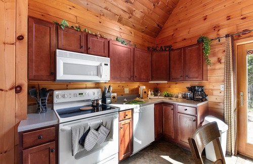 You’ll feel right at home in the open kitchen, where all of the cookware, utensils, and dishware you’ll need for your culinary adventures. Whether you're whipping up a meal from scratch, ordering takeout, or grilling on the patio (our personal favorite, propane is provided), you'll feel right at home here.