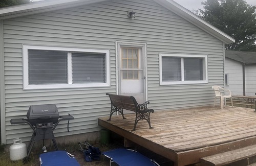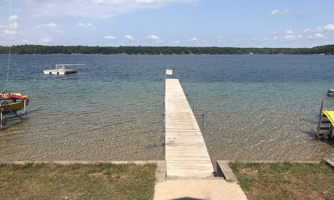We are locate on one of the cleanest lakes in the state. Great fishing, boating, water sports. Private dock for your convenience. Beautiful sandy beach. House has a nice deck looking at the water with beautiful sunsets. Back bedroom sleeps 5 and has AC. Only 45 minutes to Traverse City and 30 minutes to Turtle Creek casino. Canoe liveries only minutes away. BBQ grill for your use, fire pit, picnic table. House will sleep 9. We also have a pontoon boat available to rent on site and have kayaks and a paddle board that we offer. There is also a private raft. All bedding is provided.