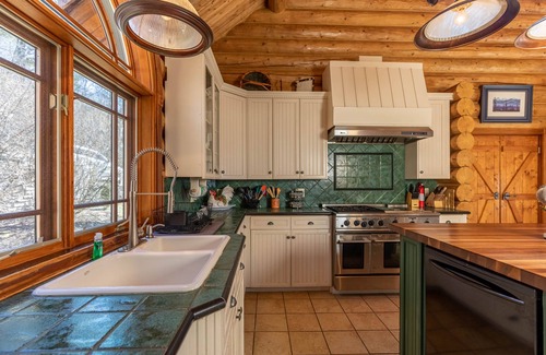 - Upgraded kitchen with double ovens, gas range with griddle, and grill