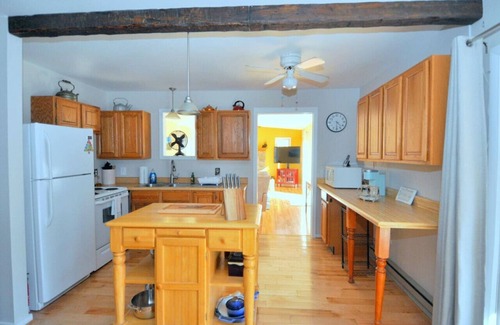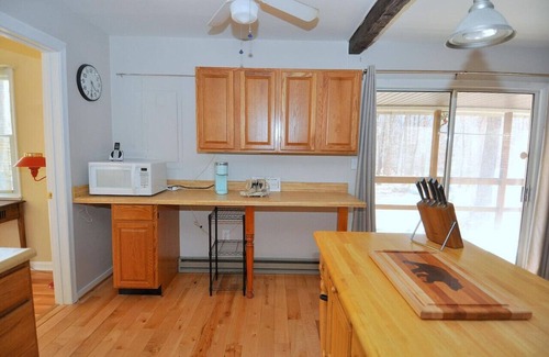 There are two bedrooms; one has a queen and one has a full-size trundle bed and a bunk bed with two double beds. There is one full bathroom. It has a charming little kitchen, a cozy living room with a wood-burning stove and TV with streaming, and a dining area with seating for four. Perfect any time of the year, this charming cabin is located just a short walk away from the Cacapon River. Bring your fishing poles or a canoe!