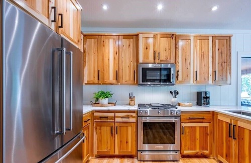 If you feel like fishing or kayaking, Beaver's Bend State Park is down the road. At the end of the day, chef up a meal in the elegant kitchen, warm up in the hot tub or relax on one of Bear Trap's four outside patios. At night, relax with a movie or show from Bear Trap's streaming library.