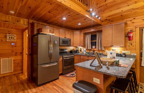 options. Bearadise at Blue Ridge comes with a fully equipped kitchen with granite countertops, gas