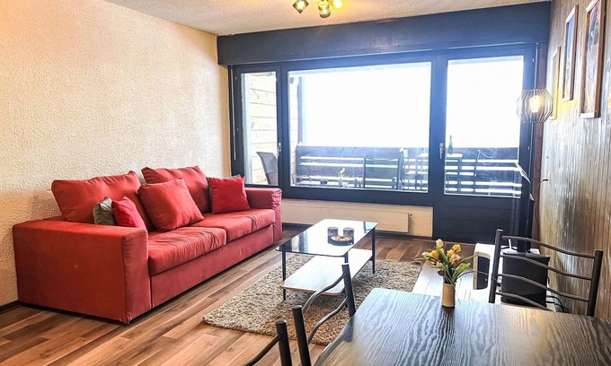"Beau Site", 1-room studio 35 m2 on 4th floor. Practical and comfortable furnishings: large living/sleeping room with 1 double bed (2 x 90 cm, length 200 cm), kitchen corner and cable TV. Exit to the balcony. Small kitchenette (toaster, kettle, electric coffee machine, raclette grill, fondue Set (cheese)). Bath/WC. Very beautiful view of the lake. Facilities: Internet (WiFi). Parking (fenced 1 car).