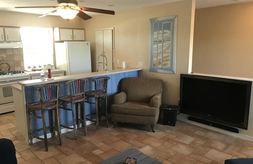 Quaint 1bed 1bath cottage located just a short walk away from the beach and the river. This newly remodeled second story in Ormond by the Sea is the perfect place for your next Florida getaway. This is a single unit detached from the main house where the owner lives. This unit is completely independent with its own entrance, AC and parking. The driveway is more than large enough to accommodate 3 cars, or 2 cars and a trailer/boat. As well as all your toys; bicycles, kayaks and canoes (no HOA restrictions). The living space is 690 sq feet and can accommodate up to 2 guests It has a brand new king sized bed in the master bedroom , the sofa can accommodate 1 more guest and full kitchen with a microwave, new gas stove/oven, new refrigerator. The living area has a 65 inch television with cable tv and internet. The house is very clean and uncluttered. After a day spent on the beach or kayaking in the river, relax or grill on the private balcony of your Ormond Beach, Florida rental. There is a very nice cement boat launch just down the road with a bait shop.