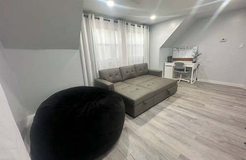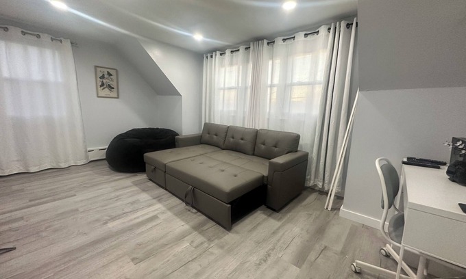 Enjoy a peaceful stay at this delightful 1-bedroom apartment in Franklin Square. This brilliant space features a cozy living room with a full bed, and an extra full sized pullout couch bed perfect for unwinding after a day of exploring. With AC and heating, guests can stay comfortable year-round. Our place is equipped for both long or short stays to make your holiday one to remember. We are very flexible and accommodating we just ask for communication. Additional guests are welcome beyond the first three, subject to a fee. We will provide a queen-sized mattress that fits comfortably in the spacious living room.