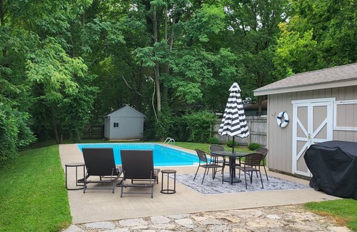 Minutes from Keeneland racetrack and in the heart of the Bourbon Trail our 1901 cottage has a fenced backyard, patio, grill, private pool open seasonally April to October (unheated) kitchen, laundry, dining room, living room, tv in lr, tv in bedroom and WIFI. A short walk to Main Street restaurants and shops. Minutes from Keeneland Race Track, the Kentucky Horse Park and our world famous Bourbon distilleries, it is surrounded by the most beautiful horse farms in the Bluegrass.