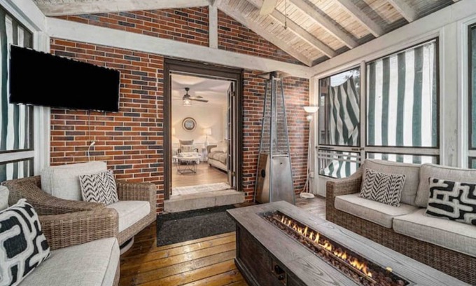 The living room comfortably fits up to 9 people. Step outside onto the porch and deck with outdoor furniture, perfect for relaxing and enjoying the beautiful surroundings. The screen porch fits up to 12 people, making it ideal for entertaining guests. Minutes from downtown Detroit and steps from the river.
