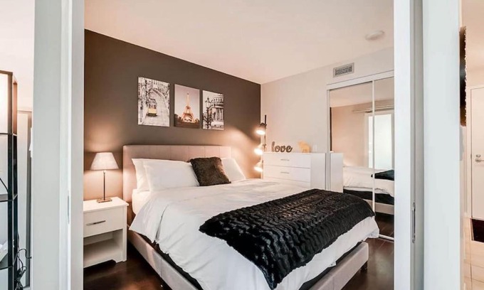 Beautiful 1BD 1BA Condo Lake and City Views is located in Toronto, just a 17-minute walk from BMO Field and one mile from CN Tower. This vacation home features accommodations with a balcony and free Wifi. The property is a 13-minute walk from Hanlan's Point Beach and within 1.5 miles of the city center. The vacation home features 1 bedroom, a fully equipped kitchen with a dishwasher and an oven, a washing machine, and 1 bathroom with a hair dryer. A TV is available. For added privacy, the accommodation features a private entrance. Popular points of interest near Beautiful 1BD 1BA Condo Lake and City Views include Exhibition Place, Budweiser Stage, and Rogers Centre. Billy Bishop Toronto City Airport is 0.6 miles from the property.
