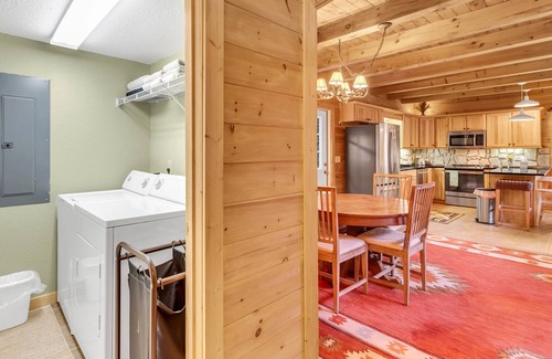 WindFall’s living room’s two-story rocked fireplace adds ambiance to the entrance, dinning and living areas. The two bedrooms with queen beds, and the bunk loft with play area sleeping four are afloat in cotton linens, down stuffed duvets and an abundance of fluffy pillows. Assorted doggie beds are available.