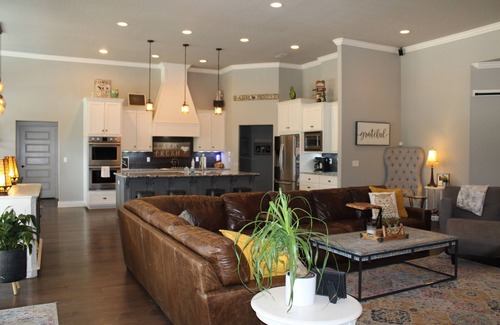 Call those Hogs and make lasting memories in our 4 bedroom home. Our home sits on 2-acres with front porch mountain views. Peaceful and quiet, yet minutes to all of what Northwest Arkansas has to offer. We are only 5 miles from Razorback Stadium! Our home has a spacious open floor concept, plenty of room for you, your friends, and family to watch a game on the patio or cook your favorite meal in our fully stocked kitchen. We have 4-bedrooms with 1 king bed, 2 full beds, 1 queen bed, and 2 twin beds. Our home also features 4 full baths, 2 half baths, office space, and an upstairs TV room. Whether you're looking to relax or explore the area, we are looking forward to your stay!