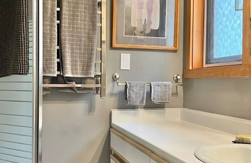 Funky antique pine furniture and old growth fir floors meet modern iron fixtures. Smart TV for Netflix etc, board games and jigsaw puzzles for all ages. The kitchen is equipped with full sized stainless appliances including dishwasher, and all the basics for meal prep. The recently installed heat pump makes all the difference for heating...and cooling. Retreat to the king bed in the master bedroom with blackout curtains and 3 piece ensuite for an uninterrupted sleep. The main bathroom has a Mexican hand painted sink set in to a live edge fir countertop. The second bedroom has a cosy queen bed. You will find a variety of books: gardening, art, adventure, travel, and cookbooks in the private office. The laundry room has front loading washer and dryer, recycling bin and cleaning products.