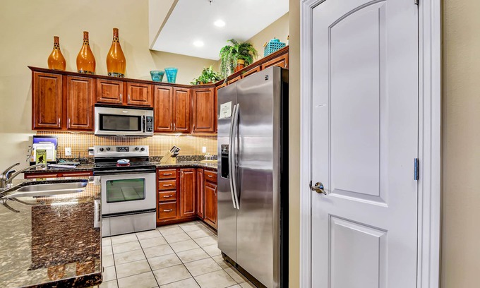 The living room has a comfortable couch and two chairs, perfect for gathering around for movie night. The kitchen is fully-stocked with everything you need for cooking and entertaining. We provide all the necessary cookware, dishes, and utensils, so you can whip up tasty meals for the whole family.