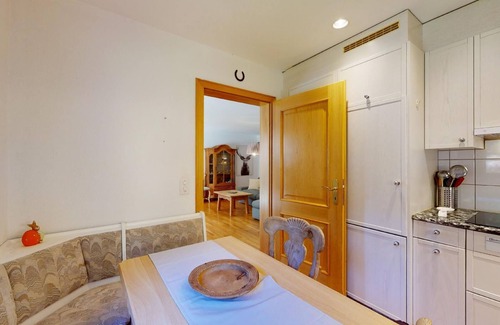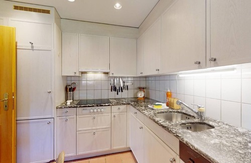 Beautiful three-room apartment on the first floor with approx. 100 m2. Entrance with hall stand. Large living room with corner sofa. Fireplace is unfortunately not usable. Dining area with beautiful free view on the mountains with access to the roofed terrace. Swisscom TV, radio, Wi-Fi. Spacious separate kitchen with oven, dishwasher, microwave, refrigerator and separate freezer. Accessories for fondue and raclette are available. A double room with 2 mattresses (2x90x190). Bathroom/WC/sink. Bedroom with three single beds with shower, WC, sink. Comfortable furnishings. A parking space in the garage. Shared ski- and washroom. Non-smoking apartment. Pets are not allowed.