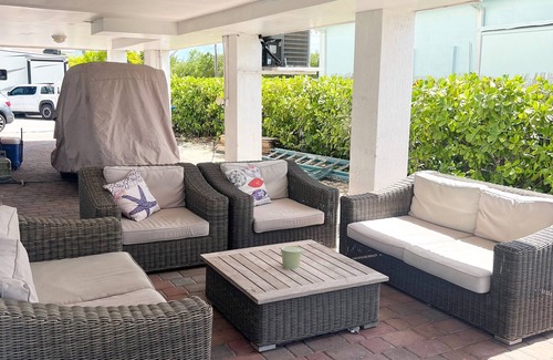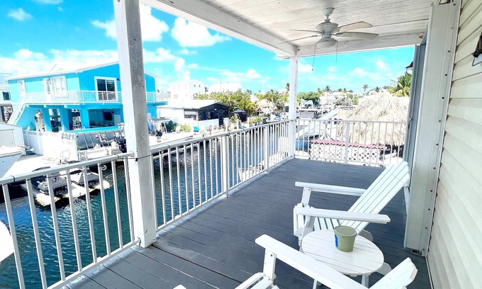** LAST MINUTE AVAILABILITY ** 10% OFF NOVEMBER & DECEMBER ** Newly renovated 3 bedroom/2 bath canal front home on pillars. Short walk to private beach. Sleeps 8 on 2 queen sized beds, 2 full sized beds, and a sleeper sofa. Great entertainment area downstairs. Open air balcony seating overlooking the canal, perfect for watching the manatees. Concrete seawall with private dock and boat lift that holds 10k lbs. Located on Tarpon Basin, with easy access to Gulf and Atlantic. Fish from the pier at the private homeowners park. Two boat ramps. Centrally located near supermarkets, waterfront dining, and activities such as John Pennekamp Coral Reef State Park (world renowned for snorkeling, diving, and glass bottom boat tours), dolphin encounters, scuba diving, parasailing, and great fishing.