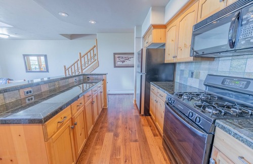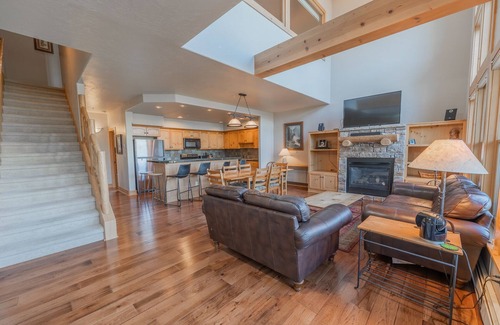 Enjoy this beautiful walk to lifts townhome that sleeps 8. The free shuttle bus picks up every 15 minutes at the end of the driveway and will take you to the base area or into town.