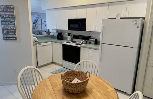 The condo sleeps six, with one king sized bed and 2 queen sized beds, and 2 bathrooms. Natural light brightens both bedrooms that offer ample closet and drawer space. Enjoy all the comforts of home, air conditioning, internet, cable, 3 TVs, dishwasher, and a washer and dryer.