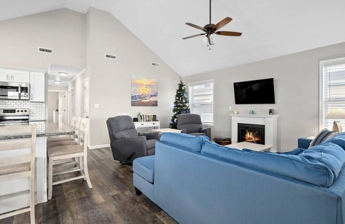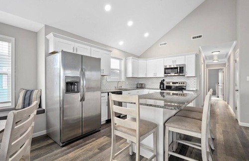 The beautiful 3 BR 2 BA home features a large living area where the family can gather while watching the big screen TV, playing some games, enjoying some meals together at home or just relaxing on the comfortable furniture. There is beautiful hard wood style flooring throughout the living space with carpeting in the bedrooms. The kitchen has stainless-steel appliances and has everything you will need to prepare a meal. You'll also love the granite counter tops, tile back splash and the large island where friends and family can gather as the meal is being prepared. The bedrooms all have new beds/mattresses and have flat screen TVs for guest to enjoy. The master bedroom has a large bathroom with a beautifully tiled walk-in shower! There is a washer and dryer for guest use. Outside, the large front patio is the perfect place to hang and enjoy a cocktail or relax in the cool summer breeze!
