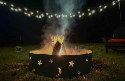 3 furnished tents situated on an extra large lawn! 2 acres of grassy area and pond access with outdoor games provided! Grill and pool included in addition to an array of board games! This is a camping experience you don’t want to miss. 2 fire pits for your use with 6 designated Adirondack style chairs. Surrounded by beautiful string lights to ensure you have a magical night filled with memories. We’re in camping season and it’s the perfect time to reconnect with loved ones for a memorable stay!