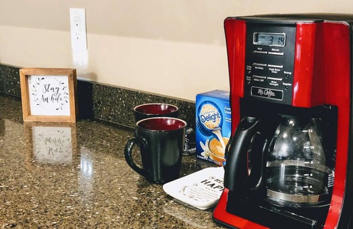The kitchen boasts stainless steel appliances and granite countertops. It’s equipped with a fully stocked coffee bar, perfect for early mornings at the driving range or before taking the kids to LegoLand or the aquarium. While our kitchen provides enough space to prepare a full holiday meal, we're also just minutes from some of Phoenix’s best eats, including the famed Rustlers Roost, the Arrogant Butcher, Culinary Dropout, The Keg and so many other great places to experience Phoenix Dining.