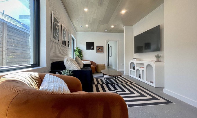 Whatever brings you to Austin, Texas - Terra Casa is the perfect choice for you! Located in the heart of East Austin, this house is perfect to help you experience all that Austin has to offer. Just 10 minutes from 6th St, Rainey, UT and Lady Bird Lake. Enjoy the privacy of a fully fenced outdoor space with cowboy pool, and private parking. Looking to sleep more than 10? Inquire with us about our second 3D printed property just 30 feet away from this one!