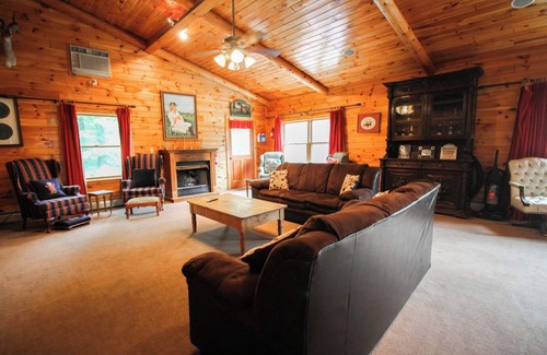 The Entertainment Lodge main area has 2 bedrooms which includes a gorgeous bath with a steam shower, a large kitchen, pool table, living area with fireplace. The additional suite in the entertainment lodge includes a private bedroom with a queen size bed and the open suite area has one queen bed, one double bed and a full kitchen. This suite shares a bathroom.