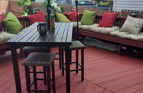 My beautiful 4bedroom home sleeps 9 people comfortably. It has pretty decor, well lit space and was created for individuals and families to enjoy and relax. Ideal for Travelling Nurses who want a comfortable shared space close to transportation and shopping. Also great for a small social or any other situation that brings joy and opportunity. Has large outdoor deck with wrap around seating and bistro lights. Great for night time outdoor enjoyment and social distancing. Perfect for those who want a space conducive to relaxation, enjoyment and social gatherings. Close to LaSalle University.