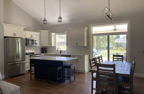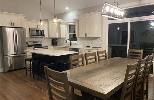 Unwind in this newly constructed home in beautiful Crystal Mountain Resort where its sure to meet all your needs. Located in a cul-de-sac perfect for children along with an adjustable basketball hoop. Featuring an open floor plan with a fully stocked kitchen with an island and large table with enough seating for 12. All new appliances, no paper filter needed for the gold filter coffee maker. Gather around the large gas fireplace in the great room. End your night in the relaxing master suite featuring a Sleep Number bed, an electric fireplace, t.v. and full bathroom. This house includes two other first floor bedrooms. One with a king bed and the other with a queen bed and a twin bunkbed set which share a full bathroom. The oversized basement bedroom is furnished with a king bed, and two twin over full bunkbeds sets and a foosball table. You'll be sure to enjoy movie nights in front of the 65inch hi-def T.V. while snuggling on an ultra soft, plush, 3 reclining sectional in the basement. Or enjoy a game of pool.