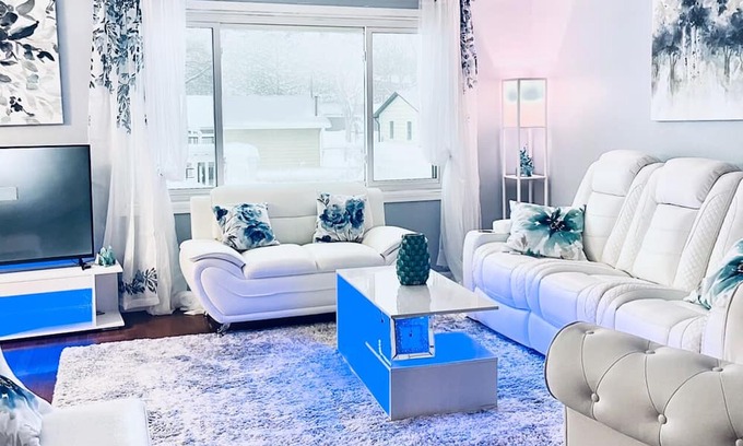 Maplewood home has a beautiful setting of living room, family room, 6 bedrooms and 2.5 bathrooms space that is perfect for your business trip or family get away! A home close to Maplewood mall, various stores and restaurants 5 min away. Kitchen appliances include new refrigerator, waffles maker, coffee maker, pots and pans and all kitchenwares you need to make those homemade meals you miss. Dining T. 6 seats & kitchen T.4 seats. If you need anything, let us know.