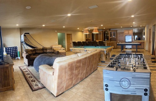 The incredible mountain views from this cabin are sure to be enjoyed by all who stay. With almost 6700 sq ft, 8 bedrooms, 6 baths that can accommodate 28+ guests, there is plenty of space for everyone to come relax and enjoy the majestic beauty of Alpine, Wyoming. The town of Alpine rests against the mountain side at the convergence of The Salt River, The Snake River and The Greys River which all flow into the Palisades Reservoir, which makes this cabin a perfect place to stay and possibly go fishing, whitewater rafting, boating, kayaking, hiking, horseback riding, mountain biking, snow machining, skiing, razor riding, you name it, there is endless activities to enjoy and a plus...less than 60 minutes to Jackson Hole Wyoming!