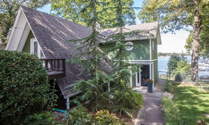Come and enjoy the beautiful lake view from our large deck or second level deck off the master that is just steps away from your own boat dock with swim deck. This house is located on a large wake free cove next to Port Duncan. This is a 1800 sq ft two story, newly renovated and perfectly equipped and furnished a-frame house with 4 bedroom, 2 bathrooms, 2 living areas, and a beautiful kitchen. There are beds to sleep 8 adults, with room for kiddos on the couch or toddler bed. A perfect get away or summer vacation spot. Monkey Island is 2.5 hrs from OKC, 1hr from Tulsa, and 3 hrs from Kansas City. 20 minute drive to Grove. This house is close to everything Grand Lake has to offer, including Sangri-la, golf course, and great restaurants. The house is located close to a few Marina that can rent you boats or jet skis and dock at the house. The dock will have 1 boat slip and 1 jet ski spot for the renters.