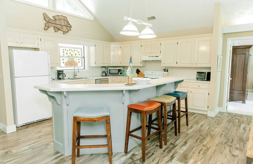The large open kitchen with breakfast bar will accommodate the biggest meals. Enjoy lots of cabinet and counter space without being away from the family fun. The bright and comfortable great room is perfect for winter fires, evening games or movies, and with two sets of glass French doors, you are never away from the beauty of the lake.