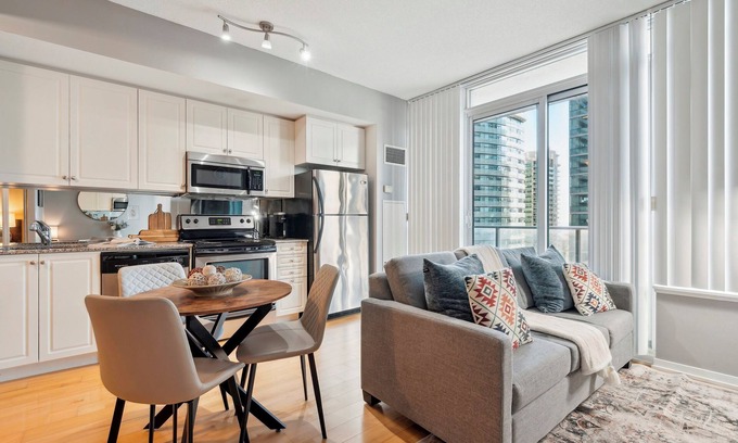 Beautiful and Stylish 1 BR Condo in DT Toronto has 1 Bedroom , 1 Bathroom, and max occupancy of 3 people. The minimum rental for this property is 1 nights, but this can change depending on the season you plan on staying. Previous guests have given good rated it, and VRBO labeled it a top-rated Apartment because of the excellent services rendered by the owner or manager of this Apartment, and has consistently provided great experiences for their guests. Most families or guests that use it recommend it to their friends and some of them are repeat guests. Apartment has a friendly neighborhood, and the Downtown Toronto has interesting places to visit. If you want to learn more about the Apartment in Downtown Toronto, such as places to visit and things to do nearby, you can check below to learn more.