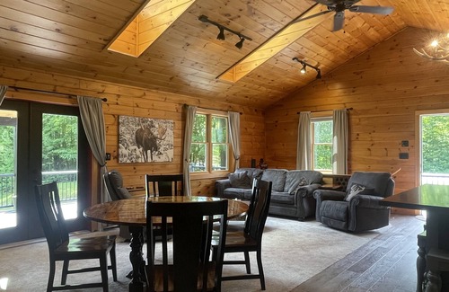 The home is spacious and absolutely charming. It rests on the shore of picturesque Hermit Lake. Winter months ice fishing off the rear of the property, snowmobile trails nearby, skiing and snow tubing 30 minutes away to many mountains near by. In other words (please refer to last picture to see location of some of the ski resorts near us) Winter Wonderland. Summer months: The home offers Central Air conditioner, A sandy beach is just a two minute walk down a rustic road. Near Golfing areas (10 minutes away) Feel like taking a dip? Swim to the raft then dry off and work on your tan. This little treasure is located in Central New Hamphire which is absolutely beautiful! Ensuring peace and tranquility for some, for others, a restful conclusion to the end of a day filled with one or several of the many great adventures awaiting you in New Hampshire. If the afternoon with a good book sounds good to you, picture yourself nestled on the porch catching up on your reading while glancing out to the water between pages. For some great adventures we are really central to all that New Hamphire has to offer. Grab a canoe or a kayak and go explore the gorgeous and tranquil Lake Hermit where you can go fishing. Lake Hermit is described as one of the best lakes to fish. The rental includes 5 kayaks, a canoe and a standing paddle board🤗. At night the fire pit offers the opportunity for everyone to gather and share the wonderful adventures experienced during the day or catch up with yourselves listening to the crackling of the fire. Once out in the back yard you will never want to come inside, however, when you do, you will be in love with this home! Tasteful furnishings and a completely and generously stocked kitchen/living room/dining room. The first floor has two bedrooms, each with a comfortable queen size bed and the loft offers two comfortable twin size beds. There is also a studio in the lower level with a full bath. The property is just wonderful! The property represents New Hamphire! The Home is near everything, however, it offers privacy and tranquility. The home is completely furnished. A standby generator automatically kicks in if there is a power loss. A new heating system assures you long hot showers and heat during the winter months. Central air conditioner. The house operates with monthly checked smoke directors and carbon monoxide detectors. Our prices are accommodating for you and your guests to enjoy this beautiful property and its prime location. You will not be disappointed. We are a couple who are committed to and take pride in our guest's satisfaction. We are located in Sanbornton, New Hampshire which is near many of the most prime winter and summer attractions and activities, along with other points of interest that Central New Hampshire can offer. Please refer to our reviews to know what our many guests have to say after their stay. The special is not days that lead to a Holiday.. please refer to calendar pricing.