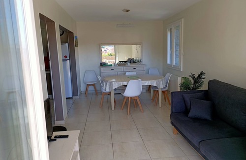 Apartment T3 close to the train station and 150m from the historic center. Ideally located, quiet, everything can be done on foot! With an area of 60m2, the apartment is very bright, with triple exposure. It has a kitchen open to a living room overlooking a balcony of 6m2 with open views of Fort Saint-Elme, 2 bedrooms, a bathroom and separate toilet. The rental of sheets and towels is optional, as well as the end-of-stay cleaning.