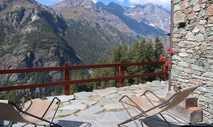 Rustic chalet "Ancienne Bergerie", 1'900 m a.s.l from the 17th century, renovated in 2015. 5 km from the centre of Valtournenche, 15 km from the centre of Breuil Cervinia, 25 km from the centre of Chatillon/Saint Vincent, in a secluded position on a slope. For shared use: property, terraced garden (not fenced), meadow. Motor access (150 m via unmade road). In Winter: please take snow chains. Parking at the house, in winter 200 m. Supermarket 5 km, restaurant 3.2 km, bar 1.6 km, railway station "Chatillon" 25 km, indoor swimming pool 8 km. Golf course (18 hole) 15 km, gondola lift 7 km, slopes 3.5 km. Hiking paths: Alta Via n°1 della Valle d´Aosta 50 m. In winter, snow boots, backpack and winter sports clothing are recommended.