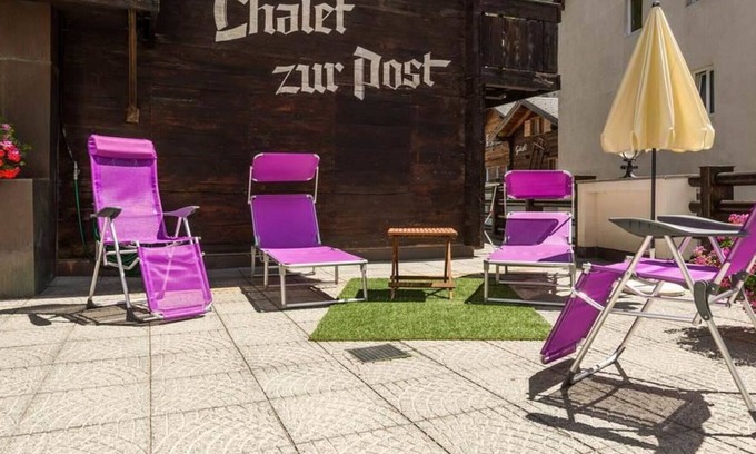 90 m2. More information by the provider: The valaisan-style chalet "zur Post" has 3 floors with one apartment on each floor. Quiet and centrally located at the post office square, 2 minutes away from chairlift and sports grounds.