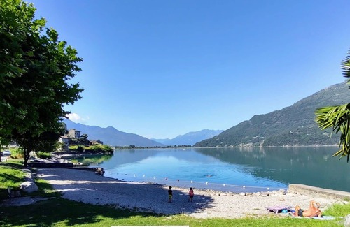 3-family house "Punto Lago". 3 apartments in the property. 100 m from the centre of Verceia, 16 km from the centre of Chiavenna, 67 km from the centre of Como, on a slope, in the residential district, 10 m from the lake, in a cul-de-sac. Bathing place. Private: garden 80 m2 (fenced) with lawn. Garden furniture, barbecue. Available: canoe. Parking at the house. Shop 150 m, supermarket 3 km, railway station "Verceia" 1.2 km, sandy beach "La Punta (Lago di Como)" 9 km pebble beach "Verceia" 10 m, outdoor swimming pool 12 km, indoor swimming pool 16 km. Marina 300 m, golf course 42 km, fishing possibilities 10 m. Well-known lakes can easily be reached: Lago di Mezzola 10 m, Lago di Como 9 km. Please note: fishing [permit required] (extra) on request. Main road 15 m from the property. Railway line 10 m from the property.