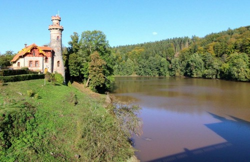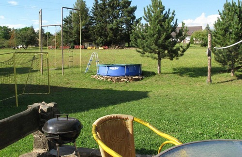 Slemeno, 2 km from Dolní Kalná: Modern, beautiful 2-family house "Relax apartment (HTN110)", 400 m a.s.l.. 900 m from the centre of Slemeno, on the outskirts, 5 km from the centre of Hostinné, 13 km from the centre of Jilemnice, 6 km from the skiing area. For shared use: property 1'200 m2, lawn. Private: swimming pool (above ground) round (3,6 m diameter, depth 80 cm, seasonal availability: 01.Jul. - 31.Aug.). Terrace, garden furniture, barbecue, fireplace, parking (for 2 cars) at the house. Shop 2 km, supermarket 5 km, restaurant 4 km, bus stop 900 m, railway station "Hostinné" 5 km, outdoor swimming pool 3 km, indoor swimming pool 13 km. Golf course (18 hole) 20 km, walking paths from the house, cycle lane 50 m, ski lift 16 km, chair lift 20 km, slopes 6 km, ski rental 16 km, ski school 16 km, children's ski school 16 km, cross country ski track 6 km. Nearby attractions: Jilemnice 13 km, Zvičina 15 km, Vrchlabí 16 km, Trutnov 17 km, Pec pod Sněžkou 34 km, Zoo Dvůr Králové, zámek Kuks (UNESCO). Well-known ski regions can easily be reached: Kněžický vrch - Vrchlabí 16 km, Mladé Buky 20 km, Pec pod Sněžkou 34 km. Well-known lakes can easily be reached: Dolce 18 km. Please note: the owner lives in the same residence. Owner lives in separate semi-detached house. Separate grass pitch available including goals and net for ball games.
