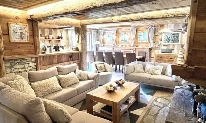 Elena's chalet is a typical Savoyard dwelling, where stone blends harmoniously with the warmth of wood.n a warm and cosy atmosphere, the 150 sqm