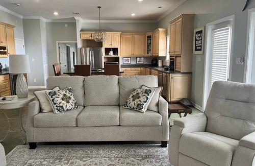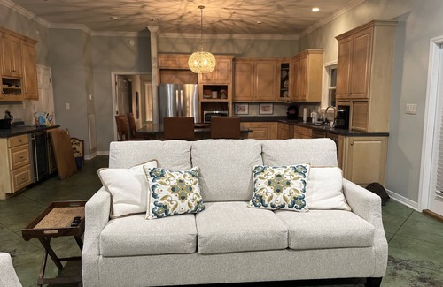 Middle Bay Hideaway is a beautiful four bedroom, two and a half bath private home that overlooks the scenic Mobile Bay. You'll enjoy incredible views from the living room, kitchen and master bedroom, but our whole families favorite area to hang out is the back porch! Enjoy your days fishing, crabbing, kayaking, boating, spending time at the beach, swimming in your own private pool, or simply relaxing and reading a good book in the porch swing. Take in the gorgeous sunrise over the bay as you enjoy your morning coffee or relax with a glass of wine while sitting by the firepit at night. We also have a private pier for fishing and crabbing. No Boat slip. We are only 2 miles from the nearest boat launch, 15 minutes from the beaches of Dauphin Island, and 5 minutes from the nearest grocery store. We offer a gourmet kitchen for those who enjoy cooking your own meals, but we are also close to many fabulous restaurants for a wonderful meal out. You will not find better seafood anywhere else! We can also spoil you, We have WiFi available for your internet needs and TV's in every bedroom. We offer Direct TV service or log-in to your streaming channels. A few of our favorite local activities is hiking the Audubon Bird Sanctuary trails on Dauphin Island, Riding bikes on the Island, touring the Dauphin Island Sea Lab, touring Fort Gaines, riding the Ferry over to Fort Morgan, Cedar Point Fishing Pier, Bellingrath Gardens and Home, and spending the day on the West End of Dauphin Island where the kids can enjoy waterslides, showers, picnic area, and chair rentals. If you love to fish, you are in for a treat. Some of the best charter fishing boats right out of Dauphin Island. Where the largest fishing rodeo is held every July. We are only 20 minutes to the nearest Walmart and about 25 minutes into Mobile. We have a brand new Top Golf 25 minutes from our home. Great for a girls weekend getaway, a guys fishing or golf trip, and family vacations. We are only about 45 minutes to the casinos of Biloxi, Ms. There is something for everyone to enjoy!!! Come stay with Middle Bay Hideaway and make memories you'll talk about for years!