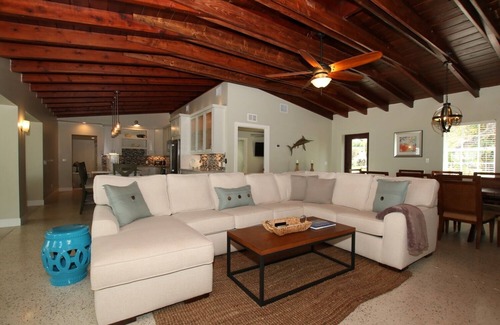 This Property has a large kitchen and living area open to amazing views of the bay with 4 bedrooms and 3 full baths. You cannot go wrong with the protected boat basin for your boat or jet skis. If snorkeling, swimming or kayaking is your thing, look no further! Either enjoy amazing sunsets in the comfort of the backyard or walk to a fun local hangout (88 Restaurant) for a homemade Island cocktail. Don t forget to enjoy the "Treehouse" with a card game or just to see a different view :). Brand new pool, right on the beach!!